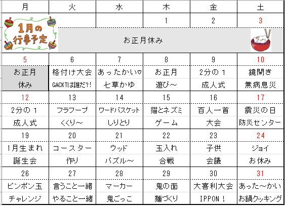 日替わりで様々なプログラムを実施しています。