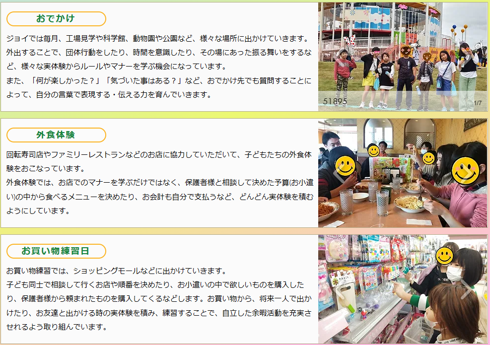 また、外食体験やお買い物の練習を実施するなど