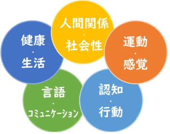 5領域は元々児童発達支援のガイドラインに明記されていました。今回の改定によって、放課後等